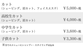 シェービングにフェイスエステでお顔を引き締め、シャンプー後にリラックスして頂く為肩のマッサージ、最後にスタイリングをさせていただきます。