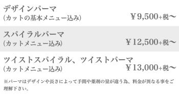 《パーマメニュー》