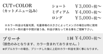 ※当店はショートスタイルが専門分野のため、カット、パーマに関してロングスタイルはお受けしておりません。