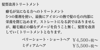 《トリートメントメニュー》